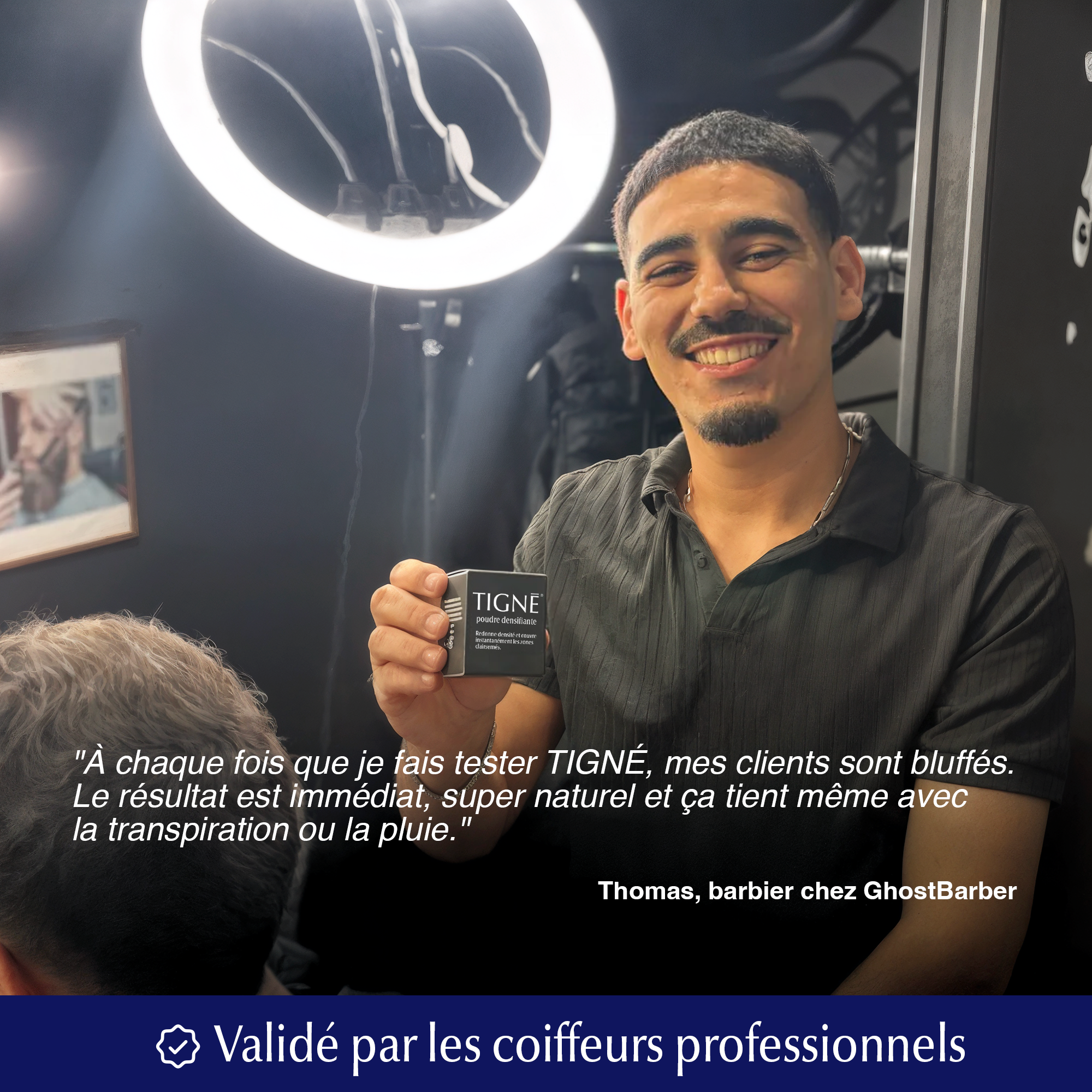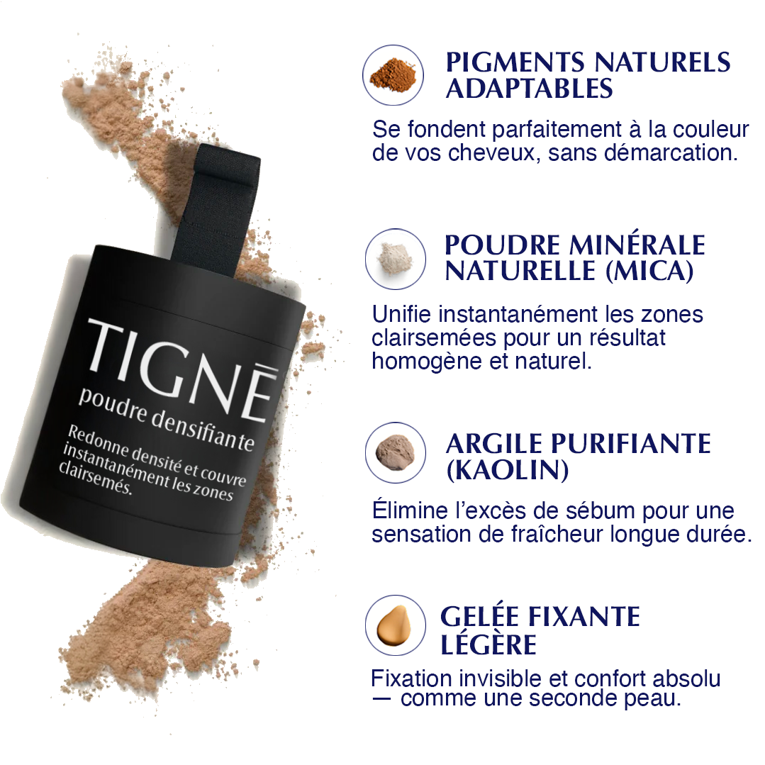 Tigné redonne instantanément volume, densité et homogénéité à votre chevelure, tout en respectant l’équilibre naturel de votre cuir chevelu.